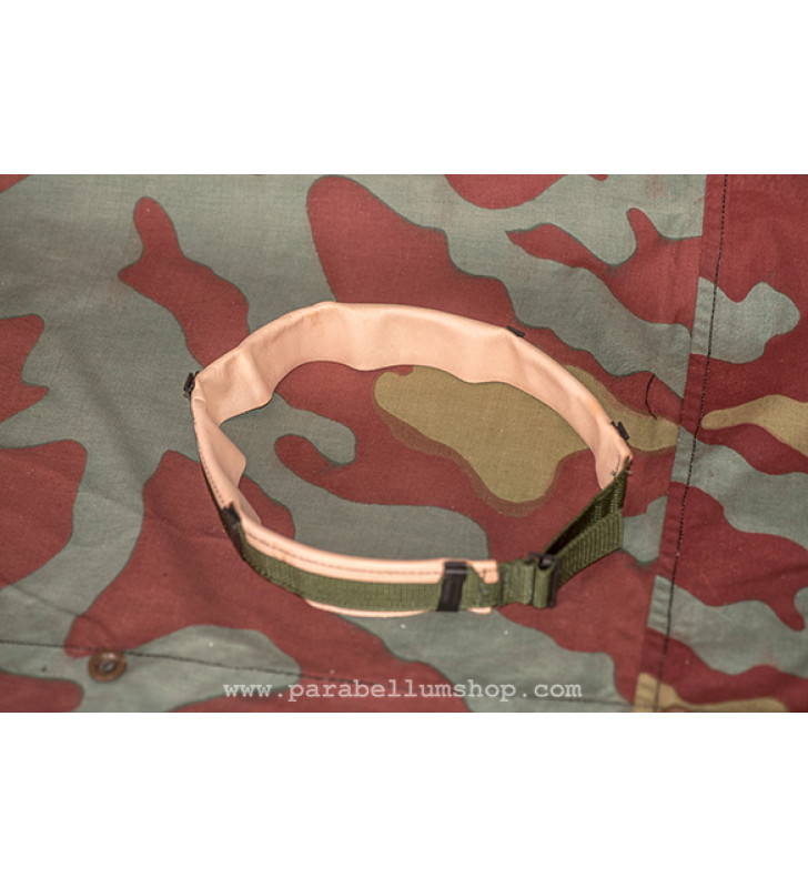 Reproduction of the M1 sweatband for the US M1 helmet. Canvas band with leather layer and attached with its clip on the suspension assembly.