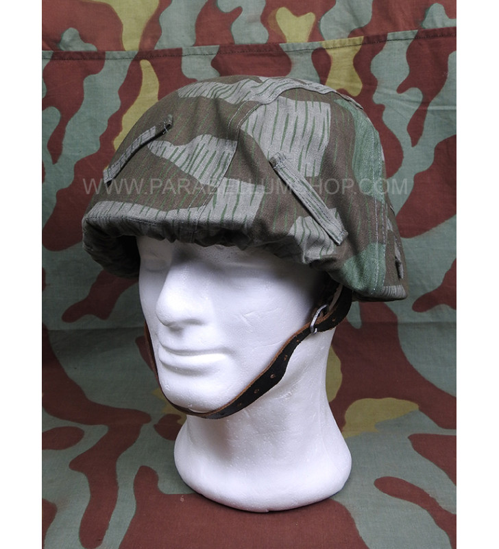 Reproduction of the splinter camo helmet cover supplied to the German army, the Wehrmacht, during the Second World War and which was normally distributed to elite units or on special occasions to be later withdrawn. Consisting of the cotton canvas in the classic mimicry also used for the M31 shelter quarter, it has some sewn loops used to apply shrubs to improve the mimicry. Adjustable by means of a lace that allows it to be closed under the helmet. The size was one size.