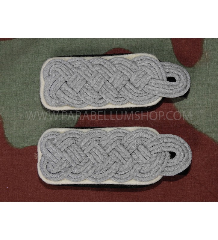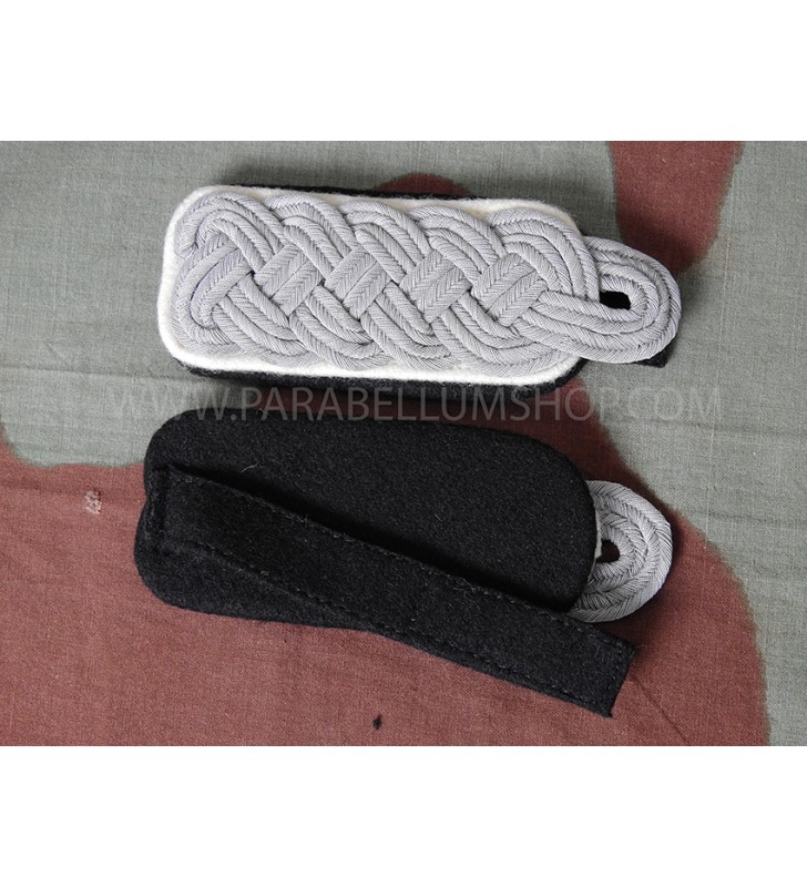 Reproduction of Major infantry shoulder board, Sturmbannführer, of Waffen SS of the Wehrmacht, characterized by the under-cloth in black and braid metal wire. Complete with the under shoulder strap with buttonhole for fix on feldbluse.