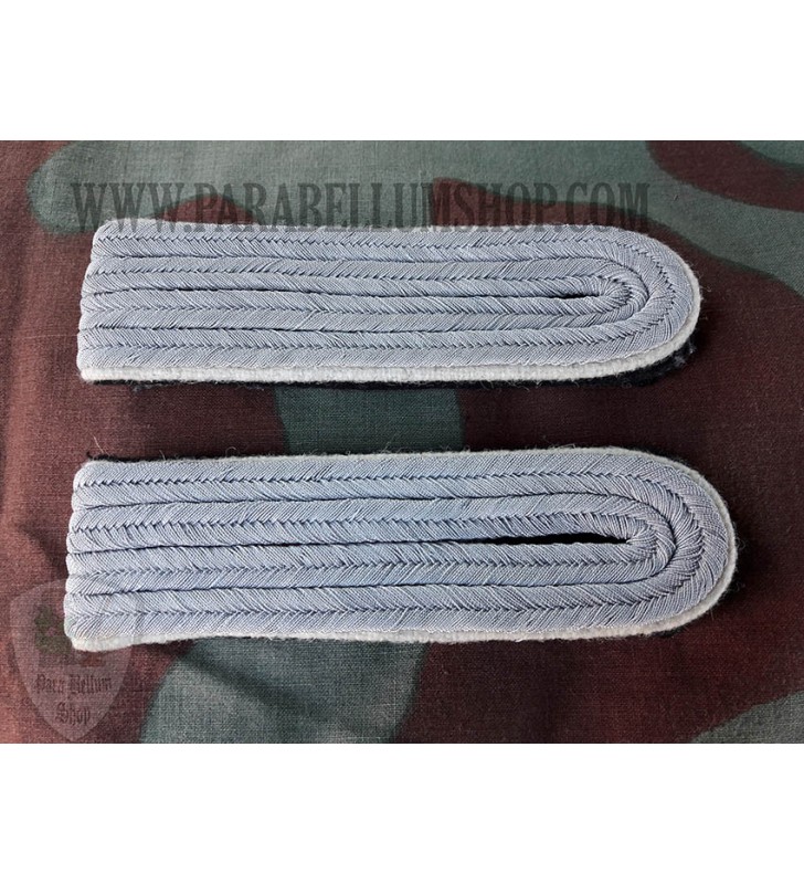 Reproduction of 2nd lieutenant infantry shoulder board, Untersturmführer, of Waffen SS of the Wehrmacht, characterized by the under-cloth in black and braid metal wire. Complete with the under shoulder strap with buttonhole for fix on feldbluse.