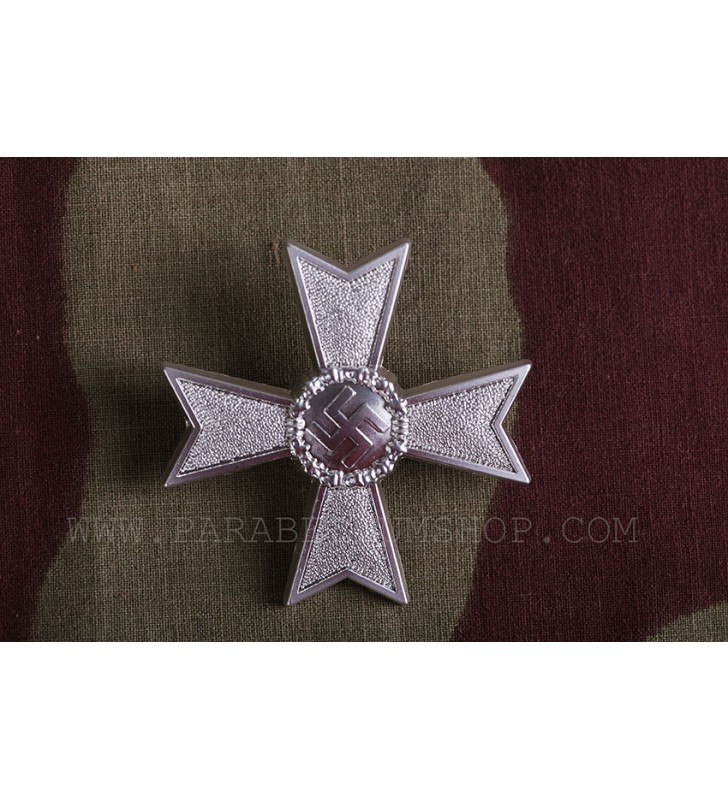 Riproduzione della Croce di Guerra al Merito di I^cl., Das Kriegsverdienstkreuz ohne Schwertern I Klasse, istituita il 18 Ottobre 1939, nella versione senza spade per premiare militari o civili che avessero svolto in patria particolari servizi meritori che avessero favorito lo sforzo bellico. Ottenile solo dopo essere stati assegnatari della II classe.