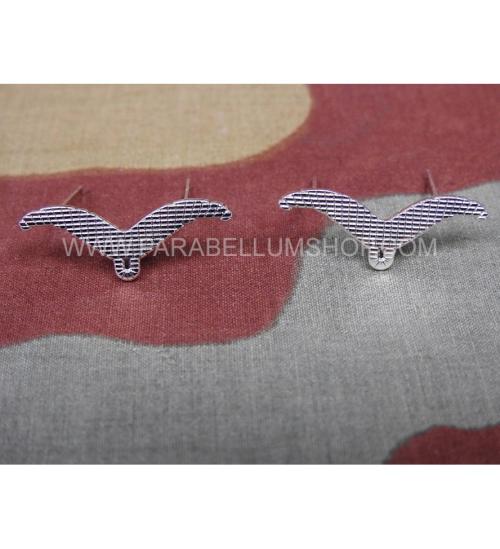 Riproduzione dei gabbiani argentati da applicare sulle mostrine da colletto delle uniformi della Luftwaffe durante la Seconda Guerra mondiale. Poste a seconda del grado da una a 4 su ogni mostrina.