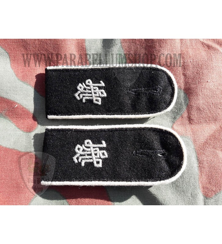 Riproduzione delle spalline da soldato di fanteria, waffenfarbe bianco, dal grado di Schutze a quello di Rottenfuhrer in uso durante la Seconda Guerra Mondiale sulle feldbluse dell'unità di elitè della I Divisione Waffen SS Leibstandarte Adolf Hitler.