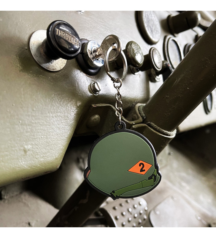 Simpatico portachiavi in pvc raffigurante l'elmetto M1 Ranger dello US Army utilizzato nella Seconda Guerra mondiale con anello metallico per inserire le chiavi.
