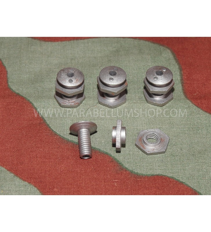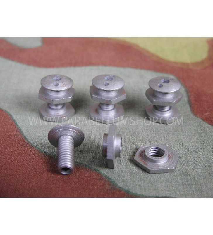 Riproduzione di elevatissima qualità dei quattro bulloni per l'elmetto M38 in dotazione ai paracadutisti tedeschi, Fallschirmjager, nel modello utilizzato per tutto il periodo bellico.