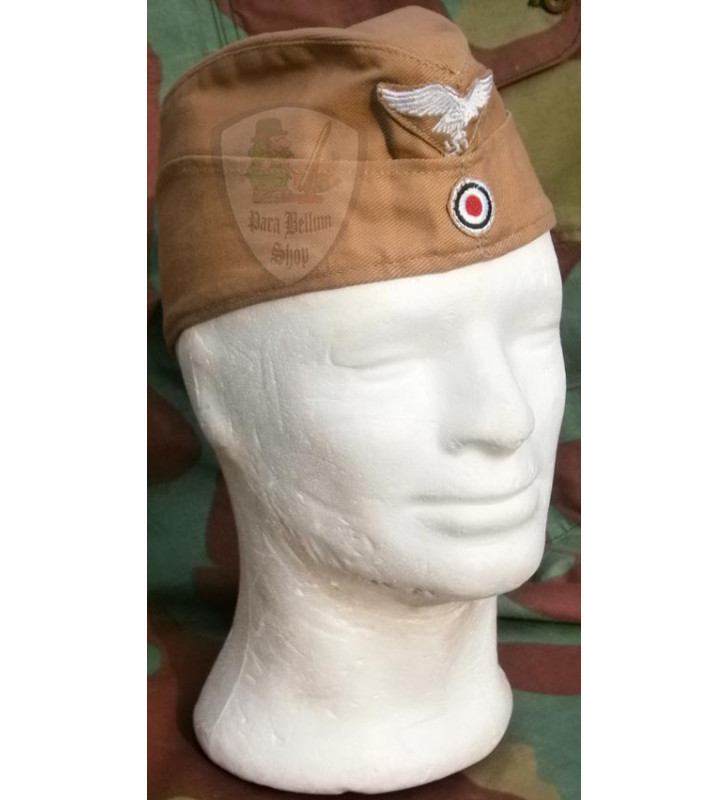 Replica della bustina della Luftwaffe, Schiffchen M40, in tela di cotone per climi tropicali ed impiegata in Nord Africa ed Italia. Introdotta a partire dalla fine del 1941 e in dotazione per tutte le unità della Luftwaffe non era molto apprezzata per la sua scarsa efficacia nel riparare dal sole ma era largamente impiegata.