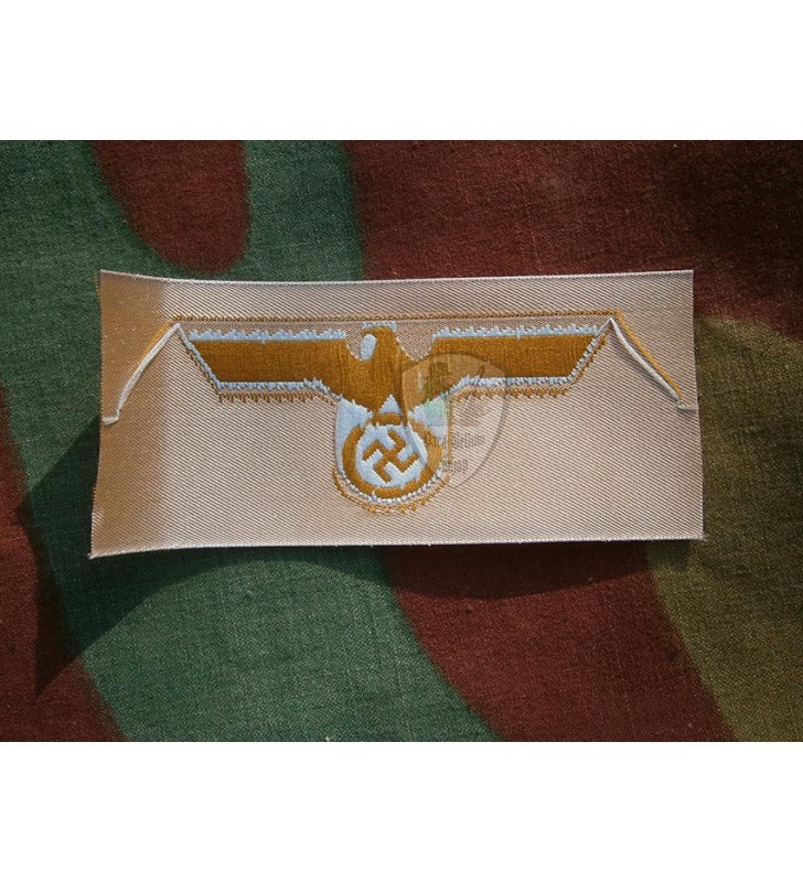 Aquila di tipo BEVo su fondo cachi tipico dei ricami tropicali adatta per il feldmutze o bustina della Heer. Ricamatura in vero BEVo di alta qualità, produzione americana.
